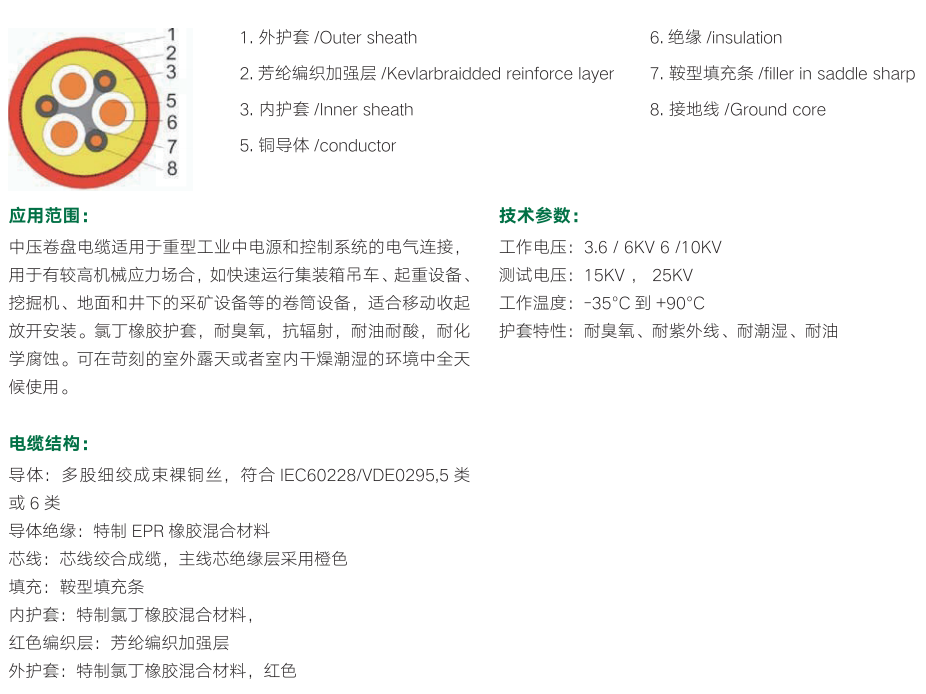 | ZR60400.001 | 3.6/6KV | 3×25+3X8 | 46.9 | 3007 | 1500 |