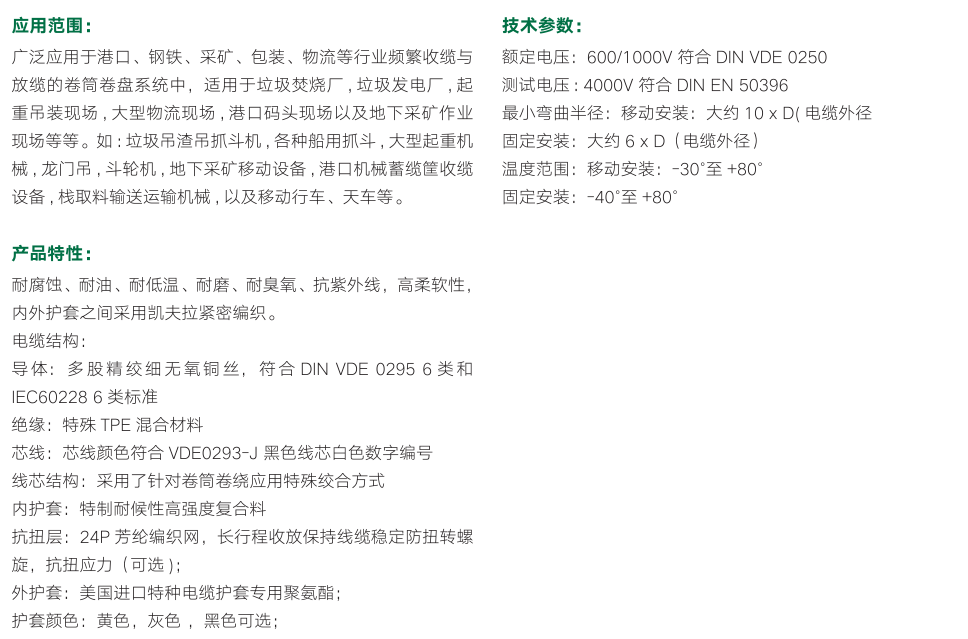 | 代號Part-No | 產品規格 | 控制芯 | 屏蔽 | 電壓等級V | 抗扭層 | 內護層 | 近似外徑 |